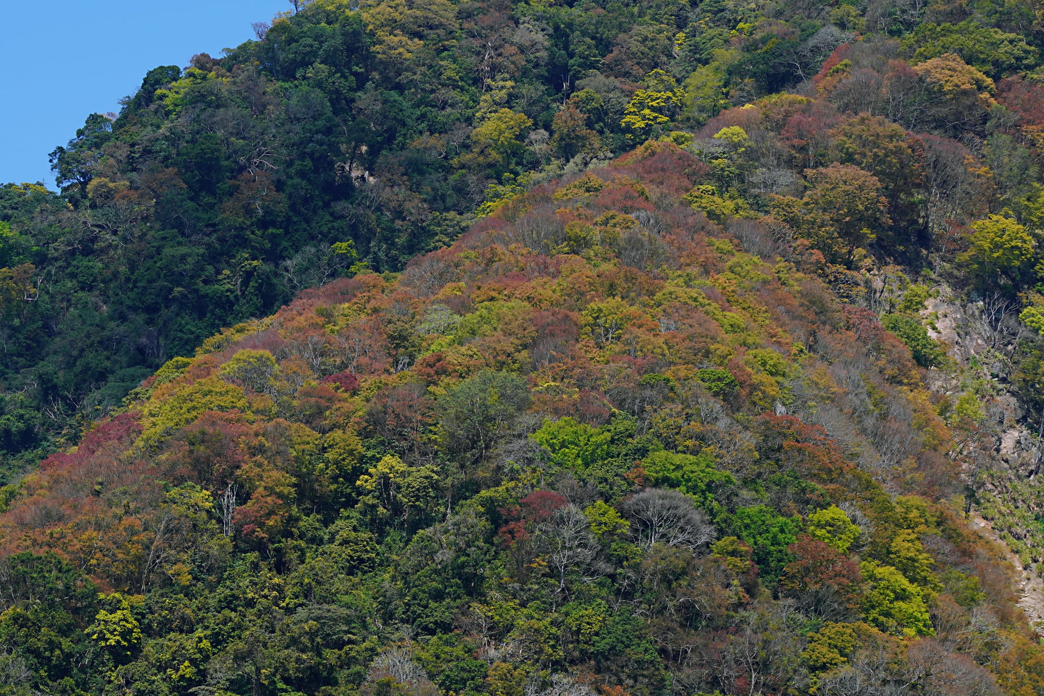這個季節,中低海拔的山頭,幾乎成了黃綠紅! — 在司馬限林道。