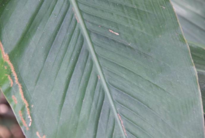 單葉互生,葉長橢圓形,葉基下延成鞘。先端漸尖。