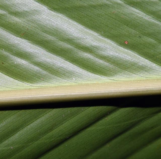 葉表具有與中肋約呈45度角斜生且微幅隆起之脈狀條紋。