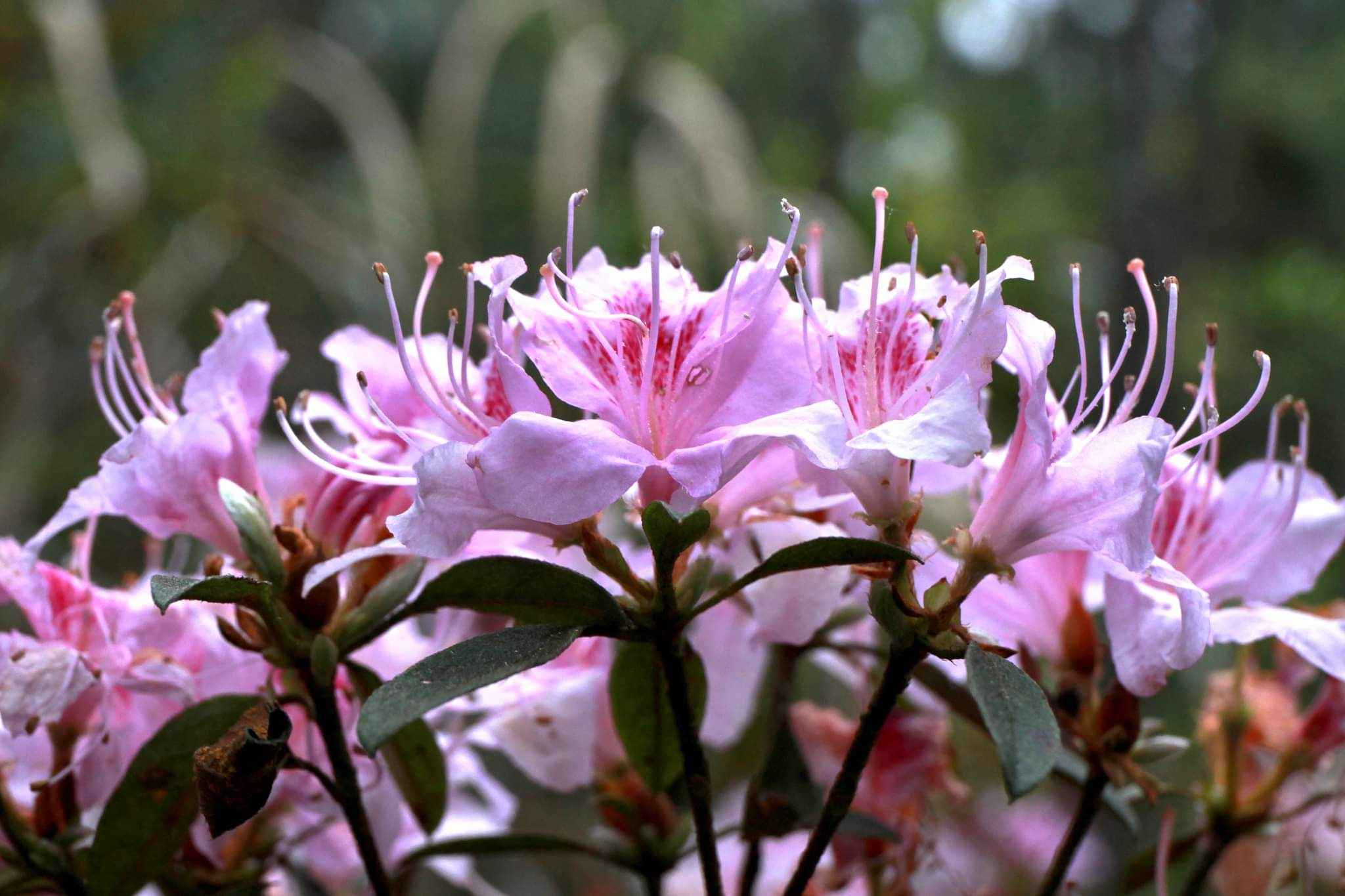 台灣特有種,分布最廣的杜鵑,比台灣杜鵑更強,但都是點狀分布,在低海拔至中高海拔的森林裡都可見,花色桃紅色,部分區域則會呈現粉紅色,嫩葉有直立腺毛,所以摸起來黏黏的,一開始是銀白色,但老熟後會轉為金黃色而有〝金毛〞之稱,幾乎一年四季都會開花,但主要還是集中在4-5月。雪霸園區武陵、觀霧、雪見都可以看的到。