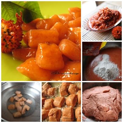材料:地瓜粉200克、太白粉40克、糖100克、構樹漿果200克