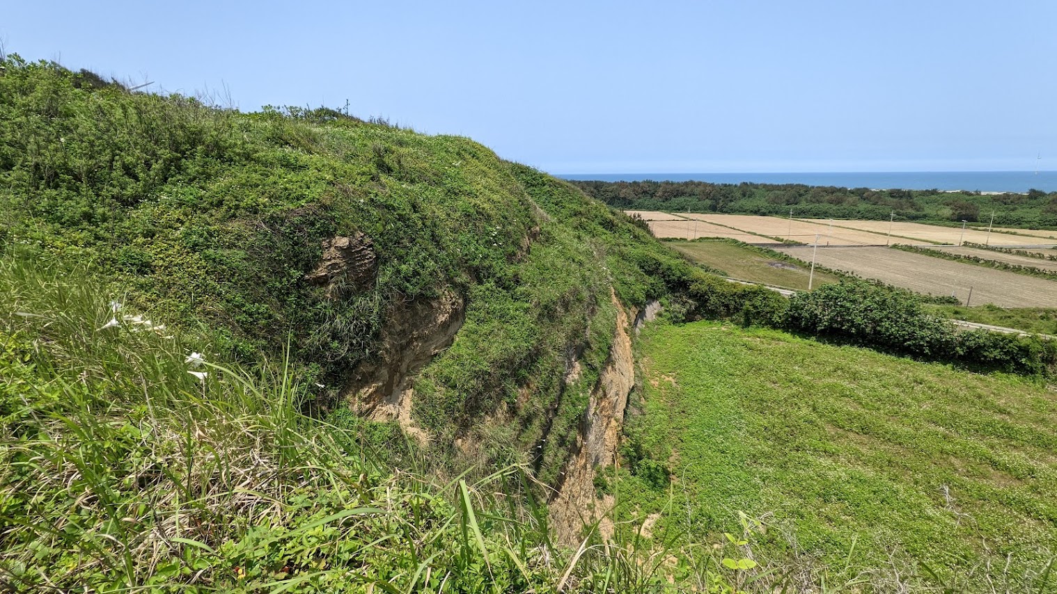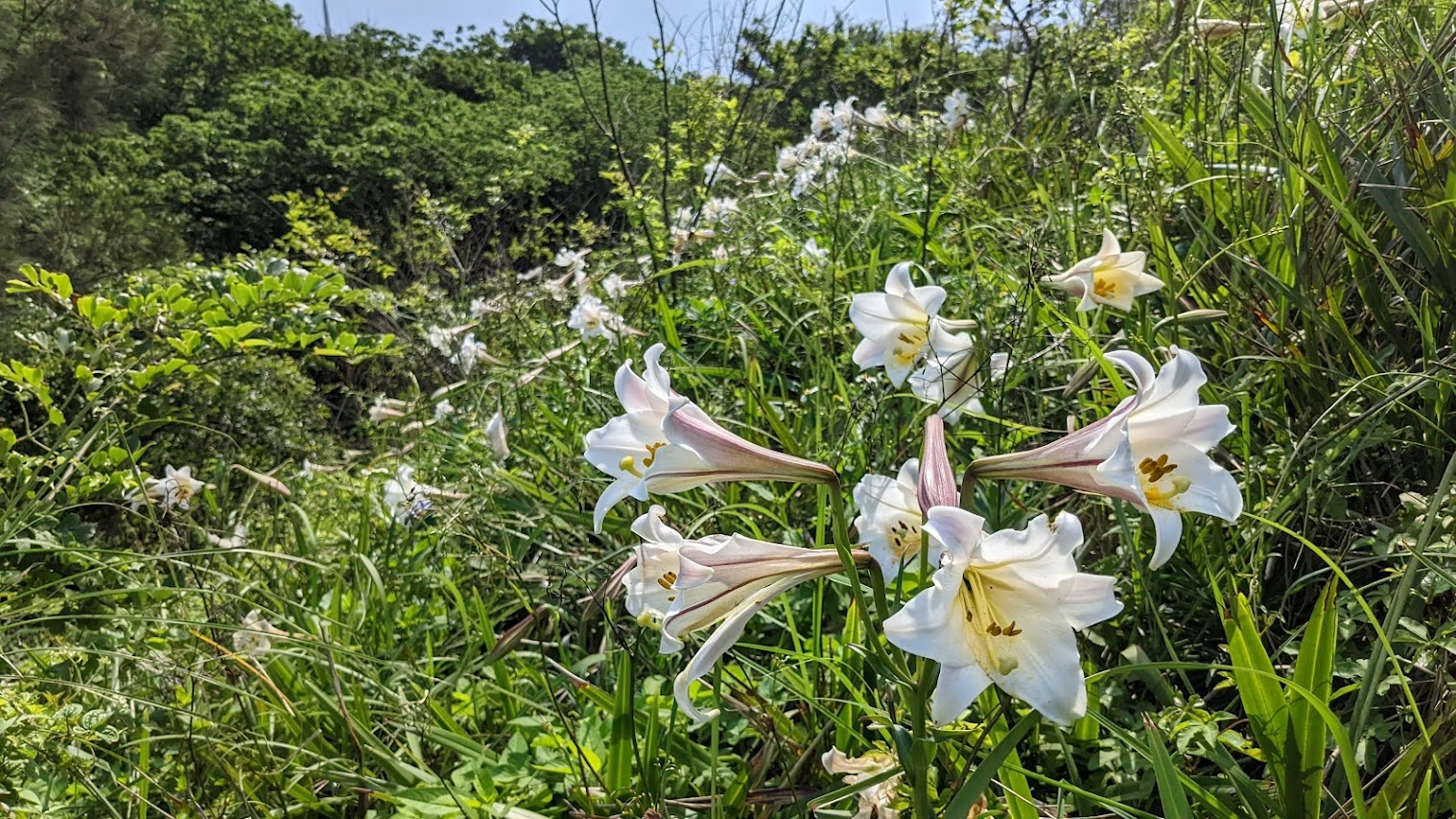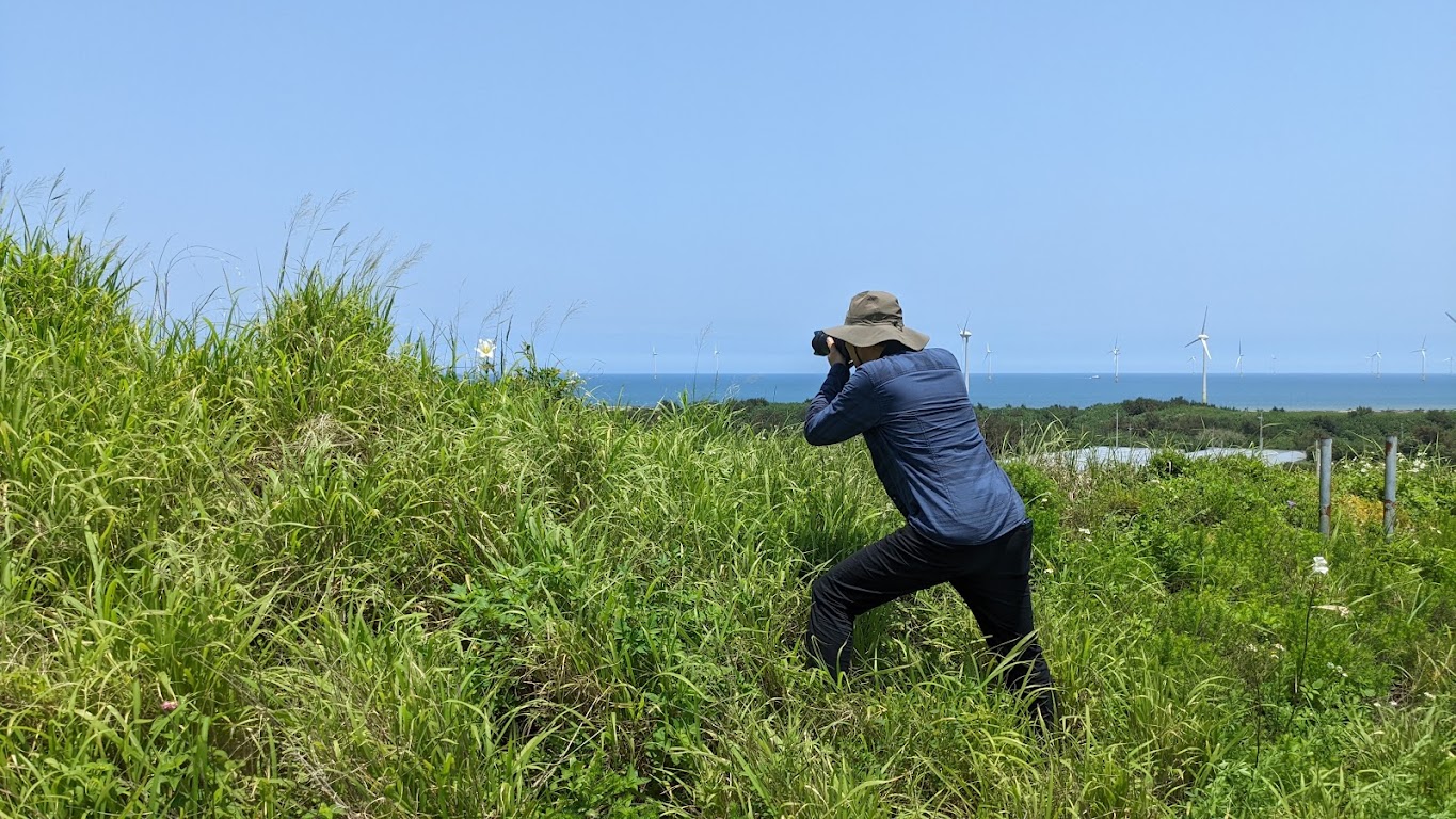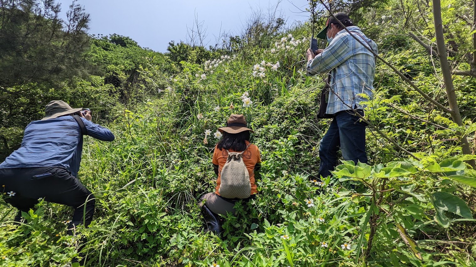 10 點左右抵抵達第一個點後,我們一行人站在海岸附近的農田路旁,先聽駱明永說大山這邊的台灣百合故事,這故事有點長,就先按下不表。總之,後龍海邊的百合很奇特,同樣的百合,生長在北邊的大山百合春天開花,生長在南邊好望角的則是夏天開花,而且花有台灣百合紅色條紋特徵,但是莖、葉卻又像鐵砲百合。