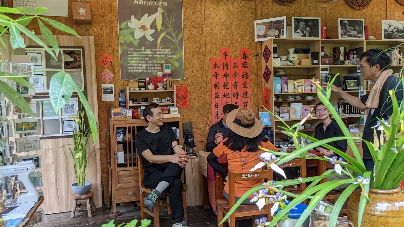 因為都是認識的朋友,所以也沒在控制時間,喝完咖啡和茶,駱明永接著帶大家去參觀遇見台灣百合民宿和社區。