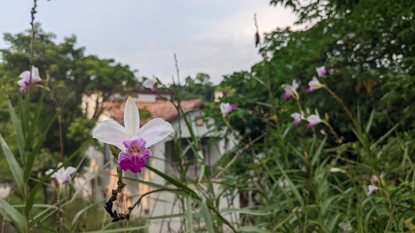 回到民宿,外頭露臺的鳥仔花(竹葉蘭) 正開著迎接我們。