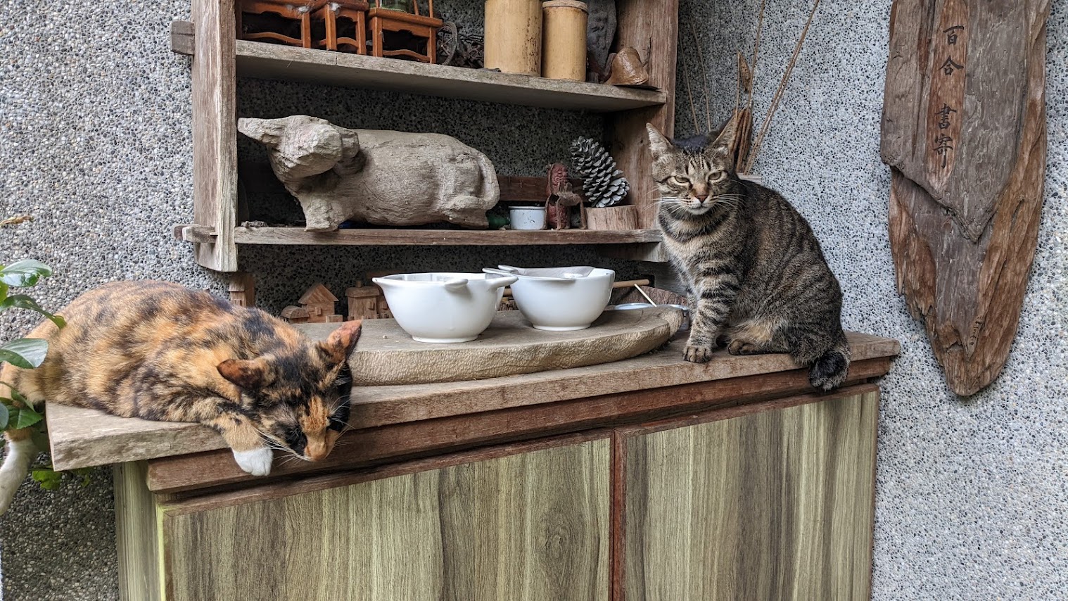 門口兩隻貓似乎早已習慣經常有客人造訪。