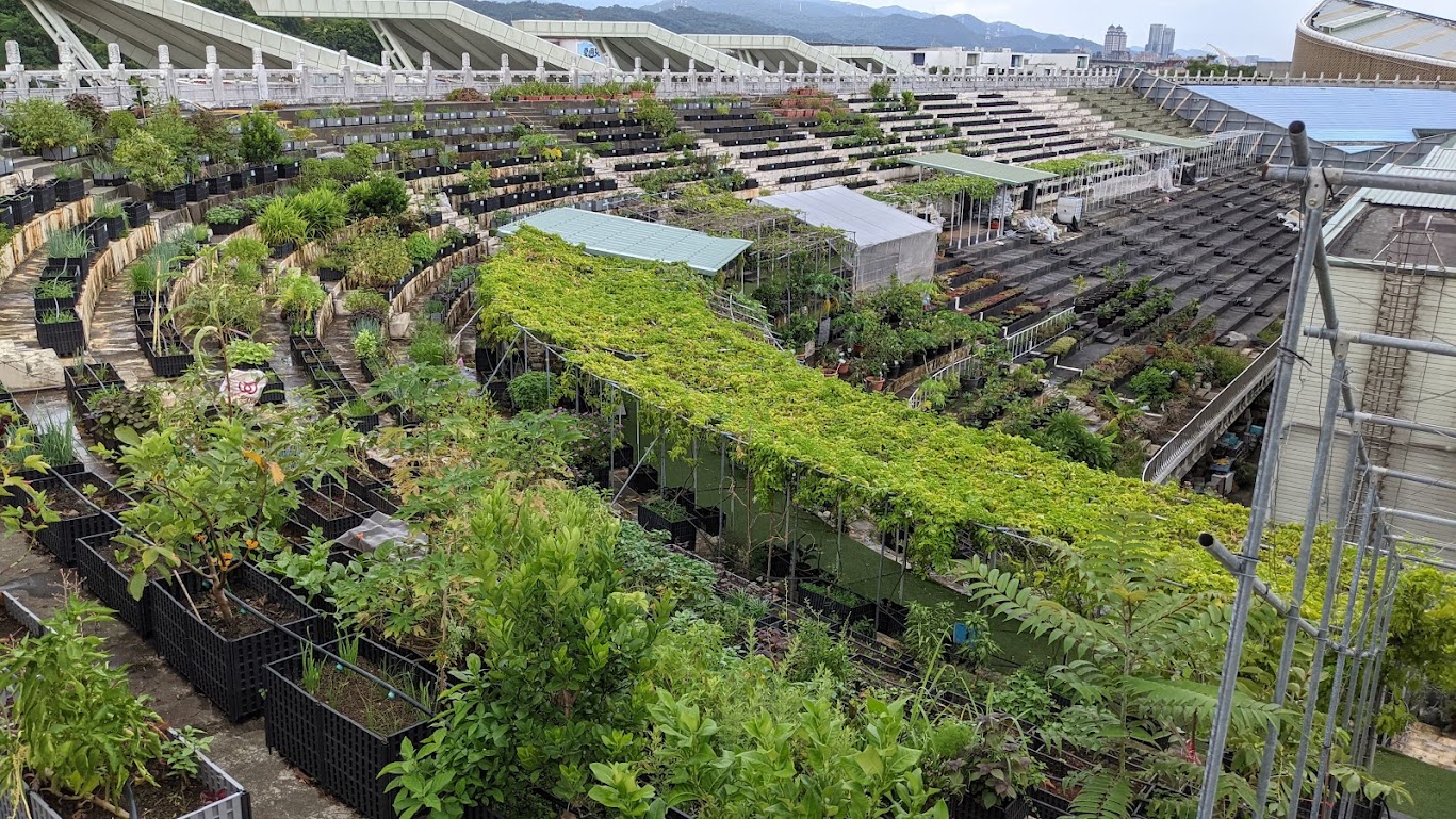 台灣最具規模屋頂農場,緊鄰圓山捷運站,佔地上千坪。聚集了數百位都市農夫,在體育館的看台打造像一座山的都市農園。