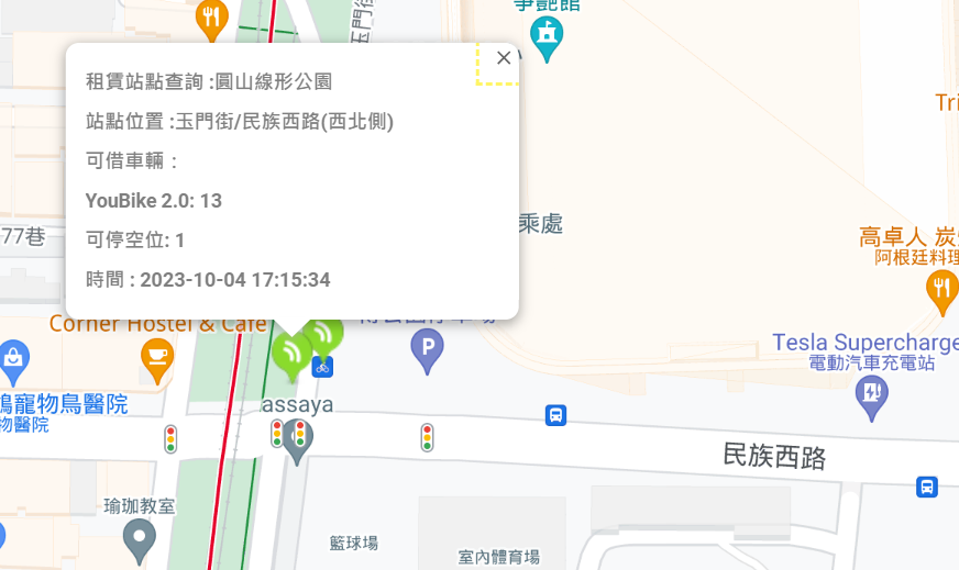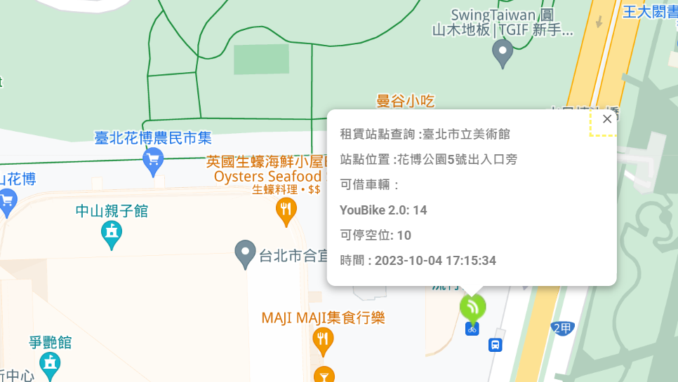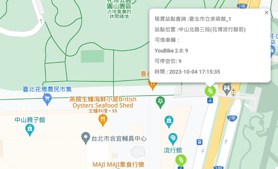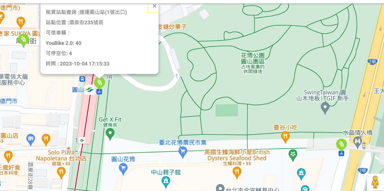 圓山花博四周有 6 處Youbike 租借站,最多有 120 部單車