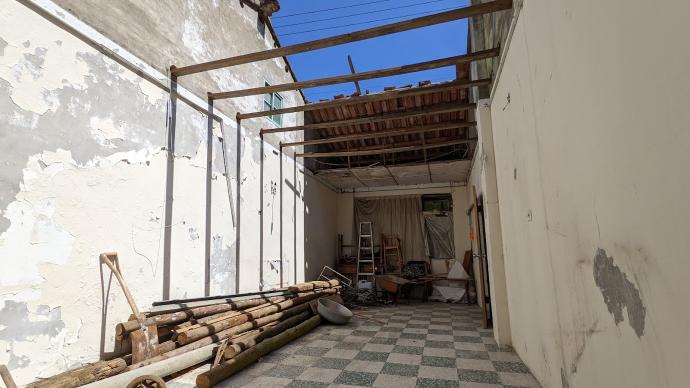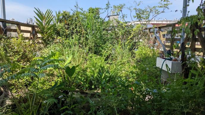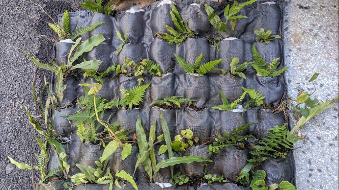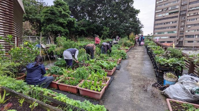 貨櫃屋塗佈防水漆、PE 防水布焊接製作水槽,植栽土方準備