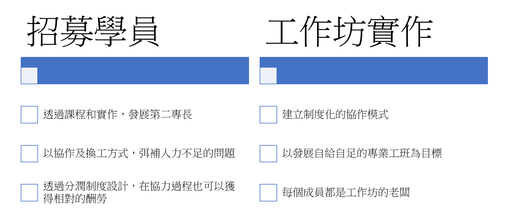 以工作坊的形式,透過每次的學習和操作,累積合作夥伴的默契,形成正向循環。